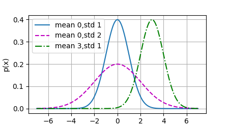 legend=[f'mean {mu},std {sigma}' for mu, sigma in params])