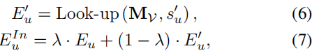 Look-up操作:给定原始的用户交互序列 su=[v1,v2,…,v|su|], 通过Look-up操作从物体嵌入矩阵中获取该序列对应的物品嵌入表示: Eu=[mv1,mv2,…,mv|su|];
