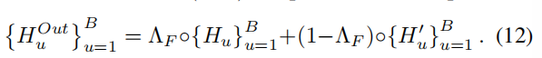 从Beta(α, α)中抽取一个混合的权重矩阵 ΛF∈RB*N,作相似操作: