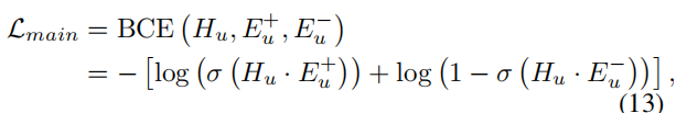 Hu, Eu+, Eu-: the user, the positive and negative items. σ(): the sigmoid function