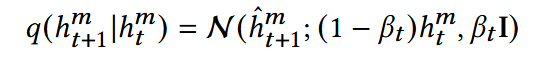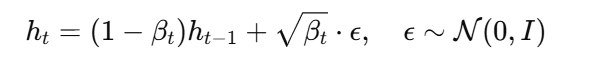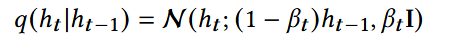 已知当前加噪,想要获得下一步加噪,分布为:均值(1 - β)h,方差βI的正态分布