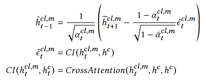 通过CrossAttention, 得到him(干净+噪声)与hc(干净)的差异,因此可以视为噪声