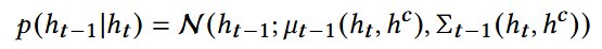 将上一步集中在ht-1的高斯分布进行略微拉伸,峰值变低,范围变大,使其分布在ht-1附近,而非仅在一点