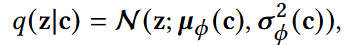 将确定的c转换成高斯分布;近似后验:已经看见了c,学习一个正态分布