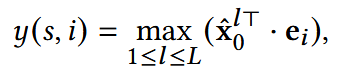 在实际中,用户交互的商品可能与一个他的偏好相关,而不是所有,因此这里取max: