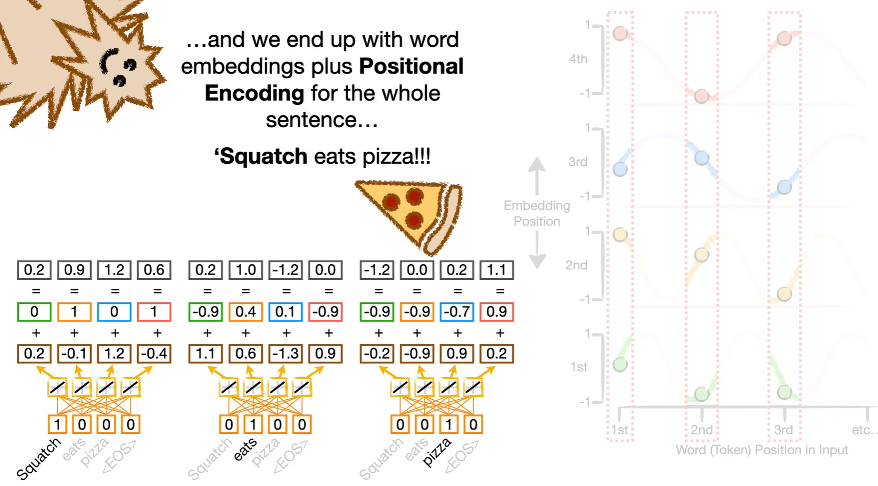word embedding 与对应位置函数值相加,得到位置编码