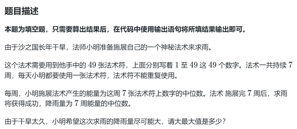 * 此题意思为将49分为7组数字,求取七组数字中每组数字的中位数所构成的数列的中位数的最大值